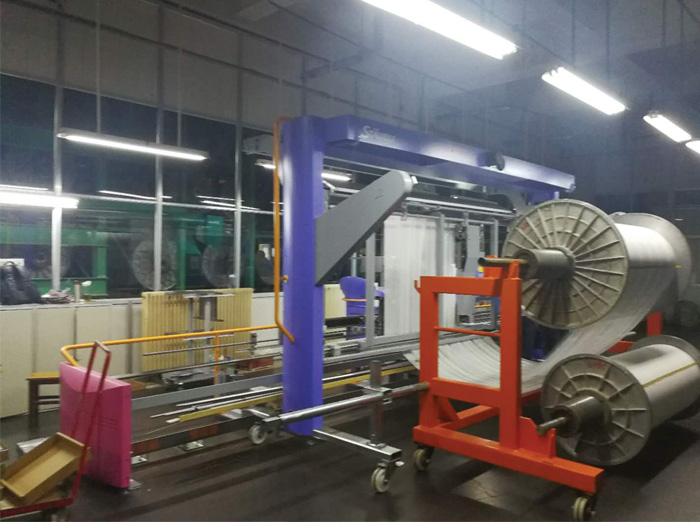 關鍵詞: 卷布機、織軸、機外大卷裝、電動液壓運輸車、穿筘車、分切機